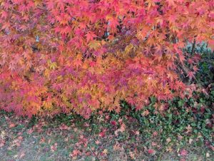 When it comes to providing color in the garden, Japanese maples do yeomanlike work as specimen trees, focal points of mixed shrub and perennial borders, accents in Asian-themed gardens, and colorful additions to container arrays. During the growing season, the leaves may be shades of green, ranging from bright chartreuse to deep forest. Other varieties boast red or purple foliage in spring and summer. Still others, like the lovely ‘Kagiri Nashiki’ bear variegated leaves in shades of pink, green and cream. Fireworks break out in the fall, when the maples color up in vibrant yellows, golds, oranges and reds. Right now, in mid to late November, many Japanese maples still have most of their leaves, providing brightness on exceptionally dreary days when the hours of daylight are slowly but surely diminishing.